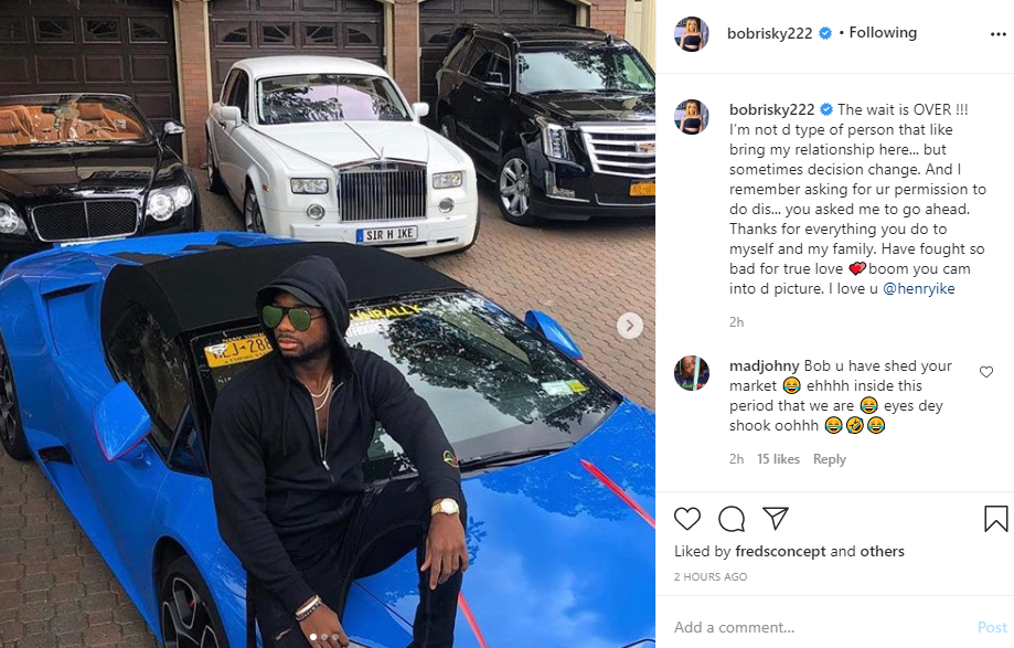 ”The wait is OVER !!! I’m not d type of person that like bring my relationship here… but sometimes decision change. And I remember asking for ur permission to do dis… you asked me to go ahead. Thanks for everything you do to myself and my family. Have fought so bad for true love boom you cam into d picture. I love u @henryike.