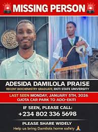 He explained that Damilola was said to have contacted his parents upon arrival in Ado-Ekiti, to confirm his safe arrival, after which his phone lines became unreachable, prompting concerns from his family and friends.