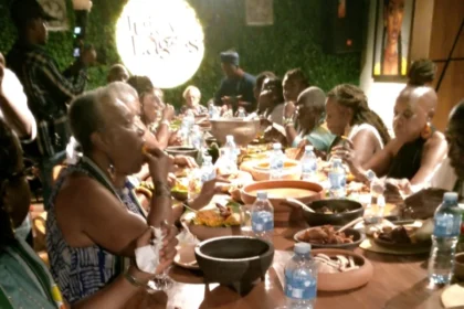 A group of U.S. tourists exploring Lagos through a cultural tour designed…
